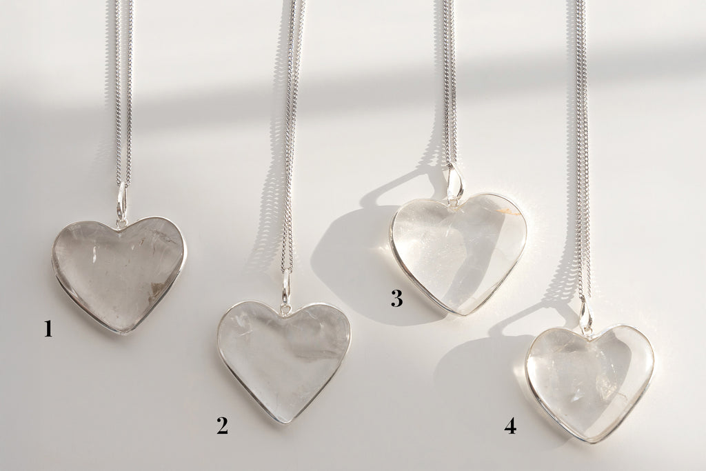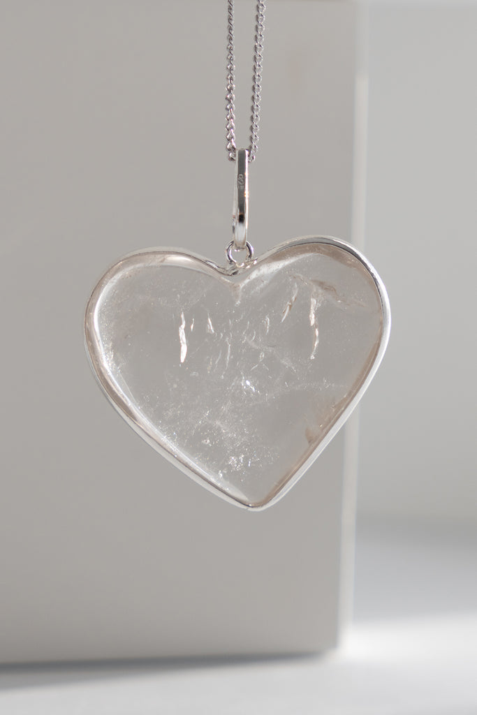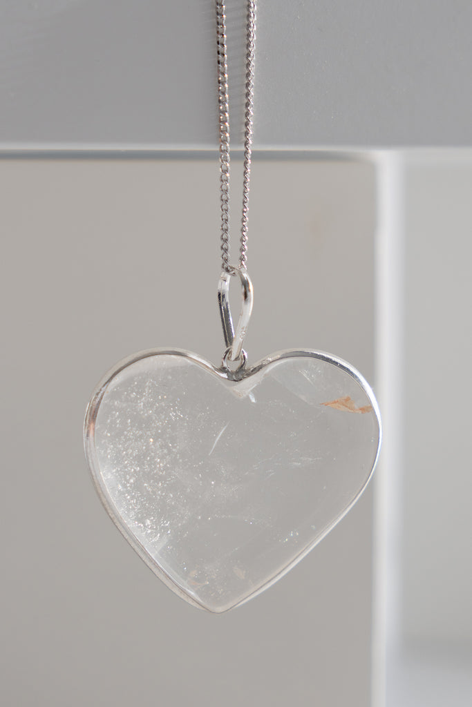 Clear Quartz Heart Sterling Silver Pendant Necklace