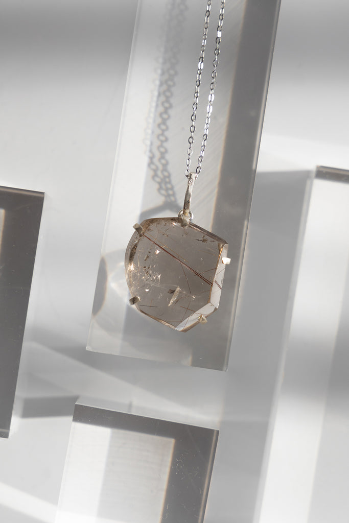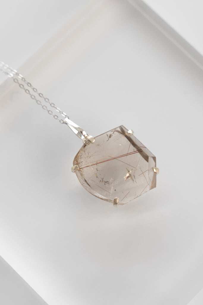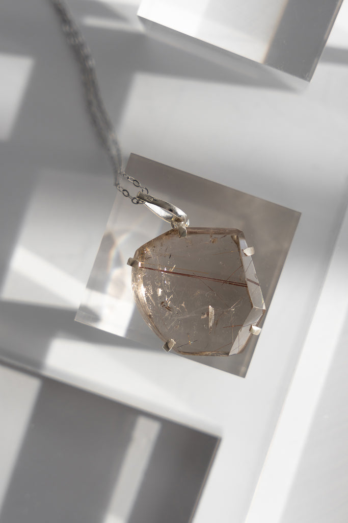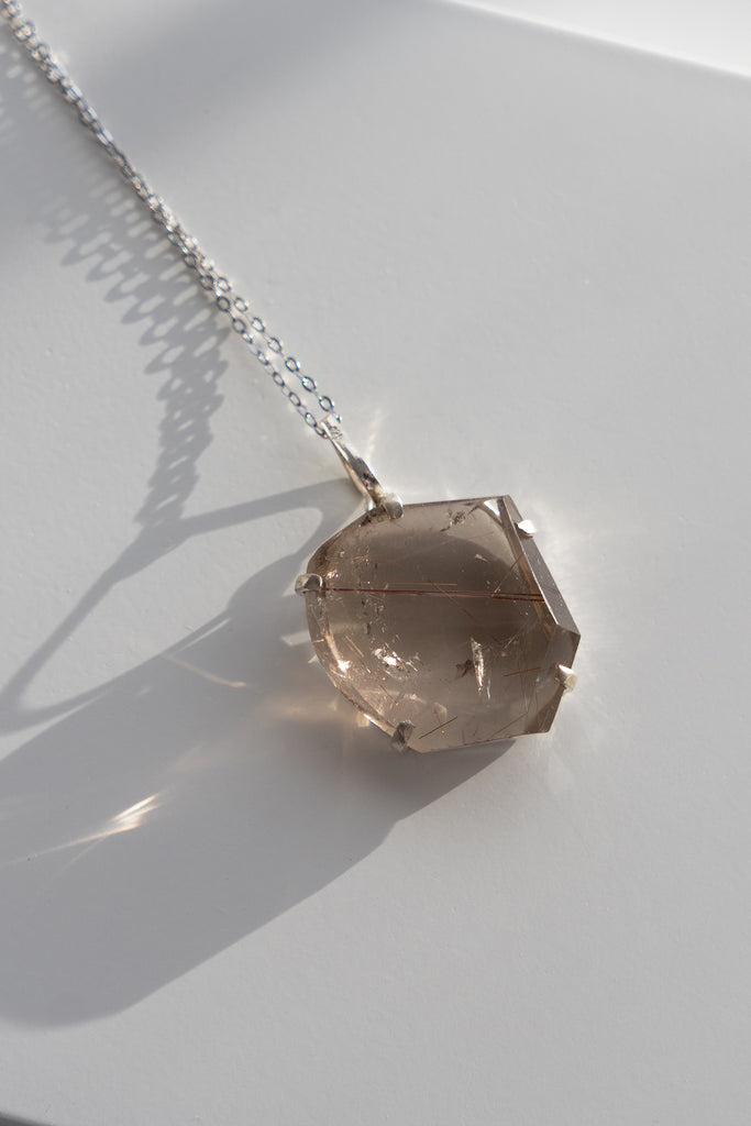 Faceted Rutile Smoky Quartz Pendant Necklace, handcrafted in 925 Sterling Silver.
