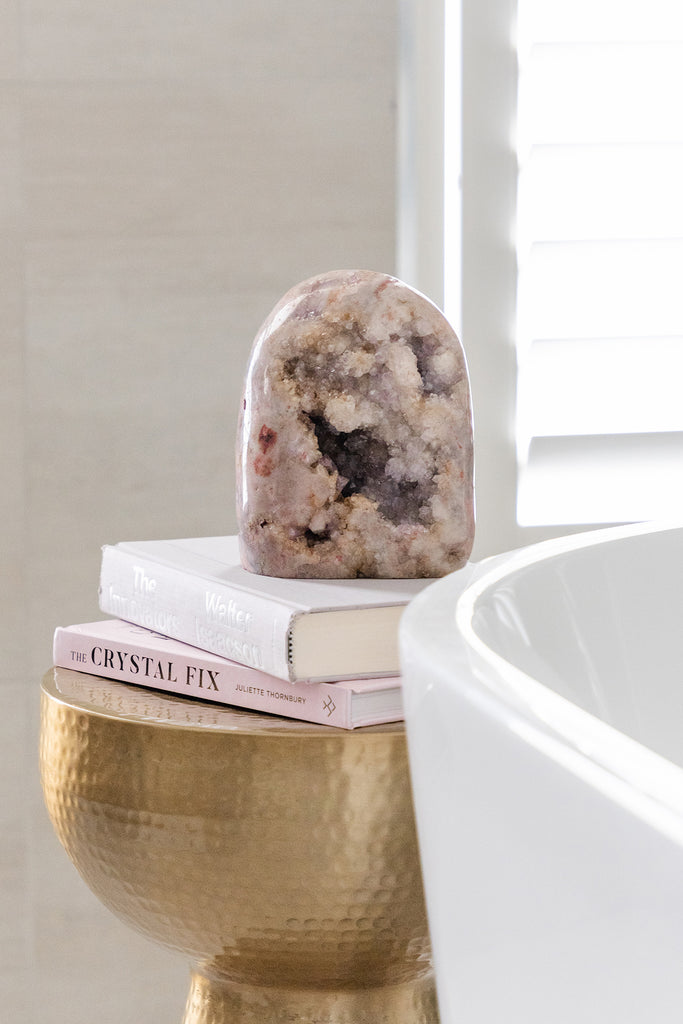 Pink Amethyst's colour ranges from light pink to a deeper tone of peachy pink. The beautiful colour results from Hematite inclusions. This delicate beauty radiates soothing energy and an air of calmness.