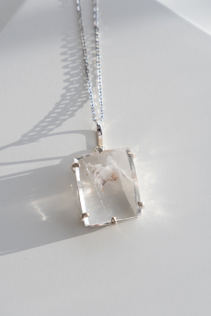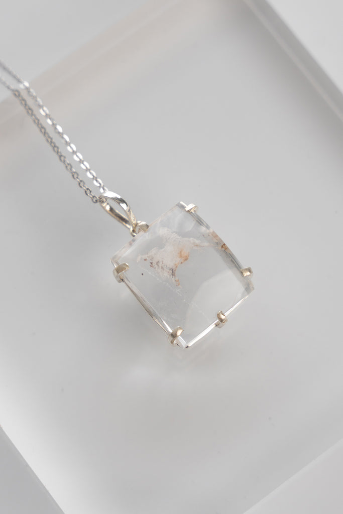 Faceted Included Clear Quartz Pendant Necklace, handcrafted in 925 Sterling Silver.