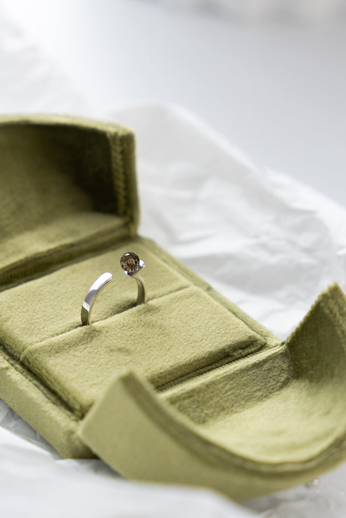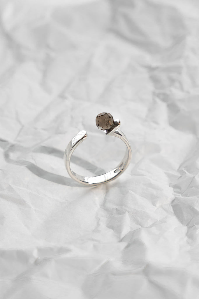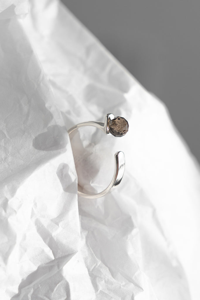 A soft, open band that curves toward a single faceted smoky quartz stone. Easy to style and refined in its simplicity, it offers a relaxed elegance for everyday wear.